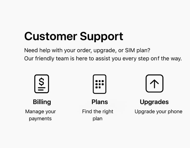 Need help with your order, upgrade, or SIM plan?Our friendly team is here to assist you every step of the way.